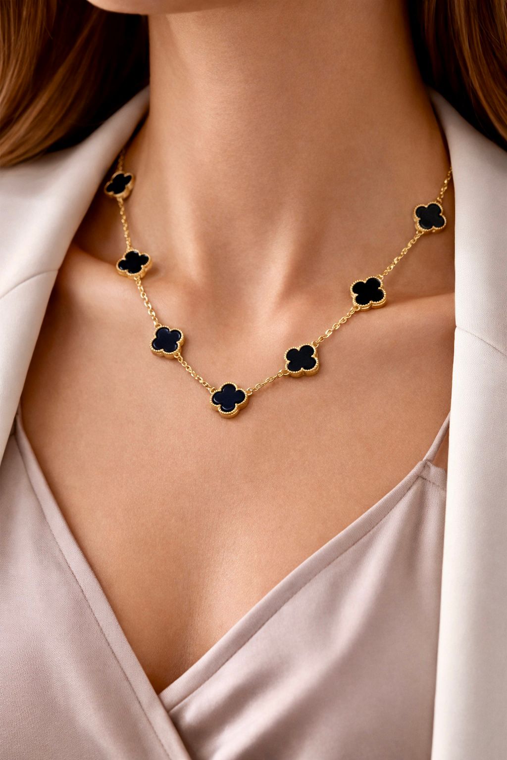 Siyah Yonca 925 Ayar Gümüş Kolye