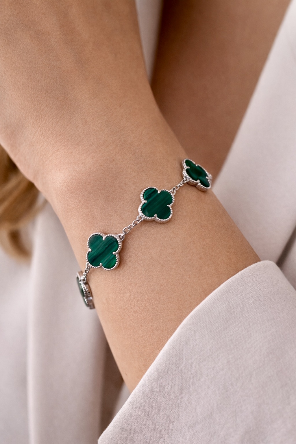 Zarif ve modern tasarımıyla öne çıkan Zümrüt Yonca Zincir Bileklik, günlük şıklığınızı tamamlayan özel bir parçadır. Minimal detaylarla tasarlanmış yonca figürleri, bileğinize hem estetik hem de şansın sembolünü taşır.